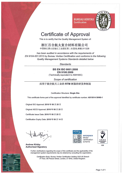 浙江百合航太復合材料有限公司成立于2014年,是集先進復合材料產(chǎn)品開發(fā)設計、生產(chǎn)、銷售、服務于一體的高新技術企業(yè), 主要產(chǎn)品有復合材料液體成型樹脂、碳纖維、玻璃纖維和芳綸纖維預浸料、以及結(jié)構粘合劑膠膜等。